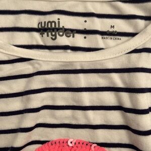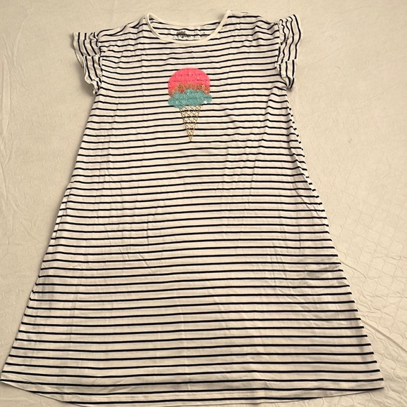 Rumi and Ryder sequin ice cream cone navy and white striped dress with pockets. Flutter sleeves. Stretchy. Smoke free home
