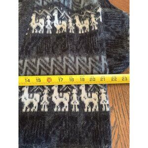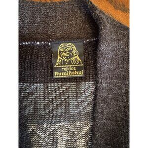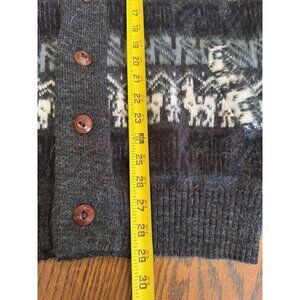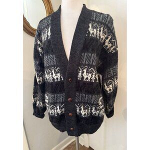 Ruminahui Women’s men’s Cardigan Sweater L Gray White Alpaca 100% Wool Grandpa