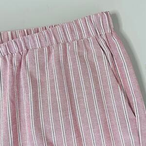Lightweight 100% cotton lounge pant in a classic striped pattern, with elasticated waistband and in-seam pockets. High-waisted.