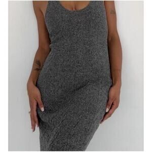 Rumored Lakeville Racerback Knit Maxi Dress in Black Smoke Heather