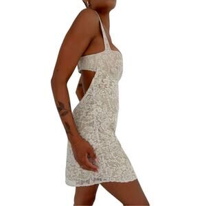Rumored Loverboy Mini Dress Cream Lace MEDIUM Lacy Feminine Open Back Croquette