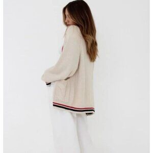 Rumored Scholar Cardigan Oversized Cream Red Blue Stripe Size Medium. Excellent condition, no flaws!