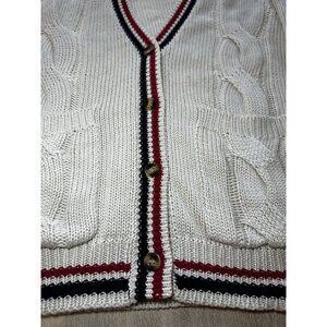 Rumored Scholar Cardigan Oversized Cream Red Blue Stripe Size Medium