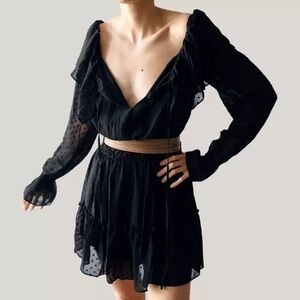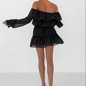 Rumored Señorita Western off the shoulder swiss dot mini black dress boho chic