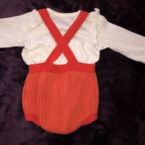 Cute romper set. Shirt not attached to jumper. It is a set but can be worn separately for versatility as well.