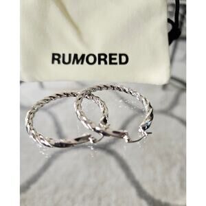 Brand new with tags, Rumored Silver Rope Hoop Earrings New . Beautiful hoops, measure 1.5 inches across, comes with cream velvet storage bag