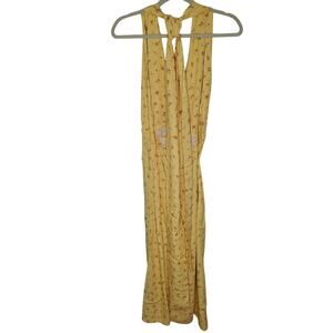 Rumored Sirena Midi Wrap Dress Windswept Floral Yellow Halter Deep V Slit Small