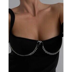 Rumored Y2K Little Black Mini Slip Dress Small Glam Rhinestones Satin HOCO Party
