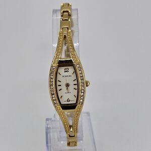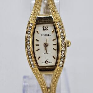 Rumours Women Watch 20MM White Dial Crystal Bezel Gold Bracelet 7.5" New Battery