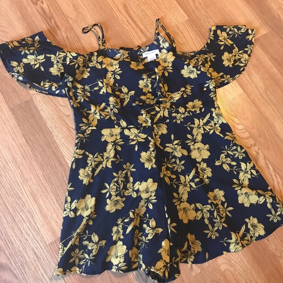 Cute little dressy dark blue with yellow flowers off the shoulder rumper. Only worn once. ♥️ it’s fits to your body.