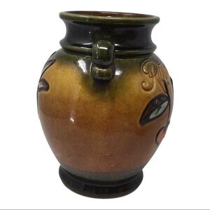 Rumtopf Large ceramic pot Pottery Made In W. Germany glazed and dark brown and light brown decorated with fruit and berries