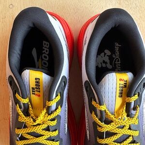 Step into magic with these limited edition Brooks Ghost 2 Max RunDisney Mickey Mouse running shoes. Featuring a bold red, black, and white colorway inspired by Mickey’s iconic look, these shoes combine performance with Disney style. The midsole is detailed with tiny Mickey silhouettes and the RunDisney logo, while the back heel displays Mickey Mouse ears for an unmistakable touch of Disney magic.