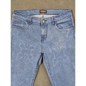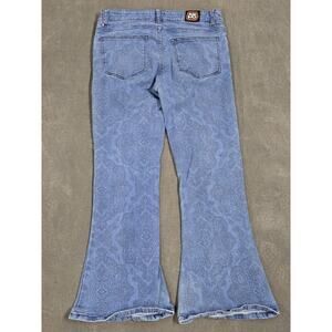 Run & Fly Jeans Womens 32S Blue Mid Rise Flared Leg Disco Paisley Bell Bottom
