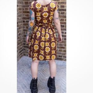 Run & Fly Retro Vintage 50's Style Dress IN Brown Floral Print.