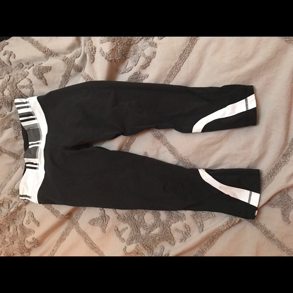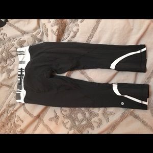 Lululemon Run Inspired Crop. SIZE 6. Black and white. Has mesh on back of pants.