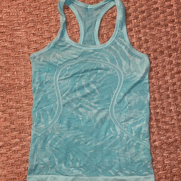 Green patterned run swiftly tank. It is in great condition but has pilling under one of the underarms. The pilling could easily be fixed with a razor. Great too I just never wear it. Open to reasonable offers!