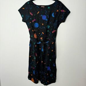 Run and Fly Cosmic Space Belted Tea Dress with Pockets.