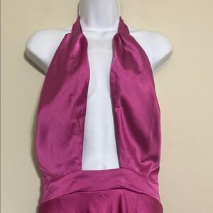 Runaway Satin Halter Top in Fuchsia maxi dress women L flattering event soft