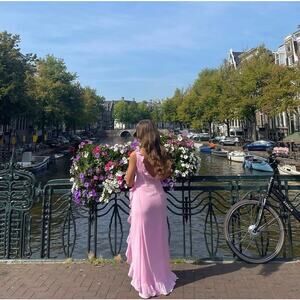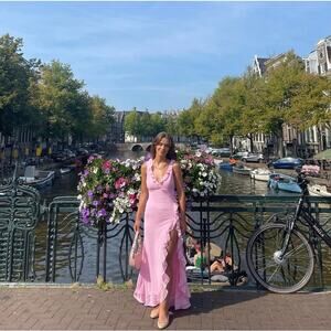 Runaway The Label Suzannah Ruffle Maxi Gown Dress Pink Size Small