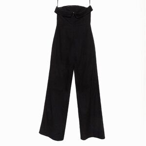 Runaway The Label Tahari Black Cotton Strapless Slit Wide-Leg Jumpsuit – Size M