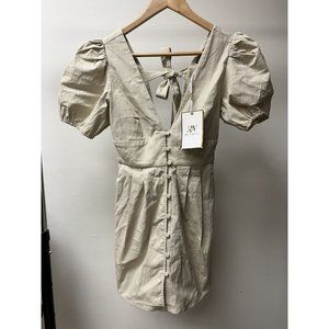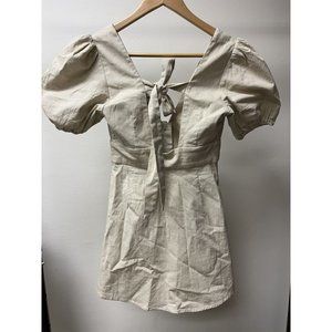 Runaway The Label XS US 2 Beige Elicit Dress Sandcastle Neck Linen