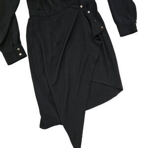 Runaway The Label Slim Belt Shirt Dress Womens 4 Black Notch Long Sleeve Stretch