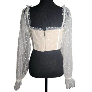 This Runaway bustier top combines elegance with a modern touch. Featuring a sheer polka dot design, it exudes sophistication. The long sleeves add a graceful flair, making it a suitable choice for both casual and formal occasions. With its timeless design, this top enhances any wardrobe effortlessly.
