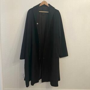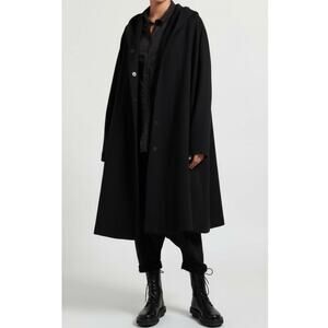 Rundholz Black Label Oversized Coat Medium Wool Blend Architectural Minimalist 50% wool, 50% viscose, very soft Snap front, midlength, midweight Front slash pockets Very oversized, would fit medium, large, XL Excellent pre-owned condition. Possibly a hint of wear under the armpits but no pilling, holes, etc. Flat lay measurements- Pit to pit: 30.5" Length: 44.5" Note: Stock photo was generated by AI to show general body fit. Please review all detailed photos and measurements before purchase. tags: German brand, neutral. minimalist, designer, avant garde, artsy, edgy, funky, steampunk, gothic, grunge, layered, artful