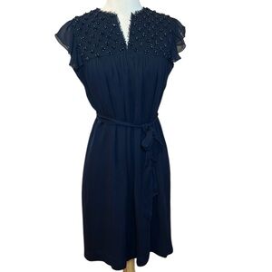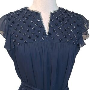 Rungolee Dark Navy Beaded Embroidered Bodice Chiffon Dress size Small