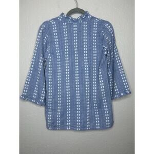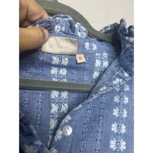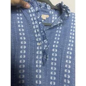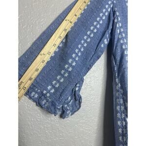 Rungolee Jacqueline Blouse Blue Floral Popover Top Ruffle Embroidered Size Small