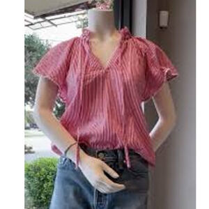 Rungolee Paloma Popover Tie Neck Blouse Candy Pop Stripe PB-CPS Small S NEW