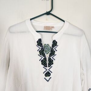 Rungolee White Blue Green Embroidered 3/4 Sleeve Tunic Size XL
