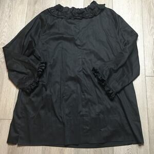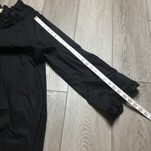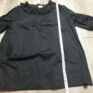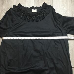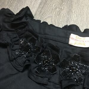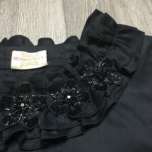 Rungolee Womens Beaded Embellished Floral Ruffled Tunic Blouse Black Relaxed Fit