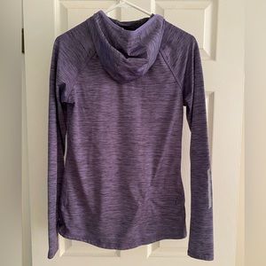 Old Navy performance wear. Zippered back pocket; thumb holes to keep the sleeves in place. Hooded with higher neck in the front to stop the wind.
