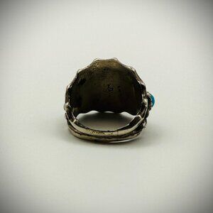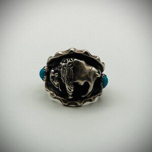 Running Bear .925 Sterling Silver Buffalo Ring w/ Turquoise – Size 10 (10 g)