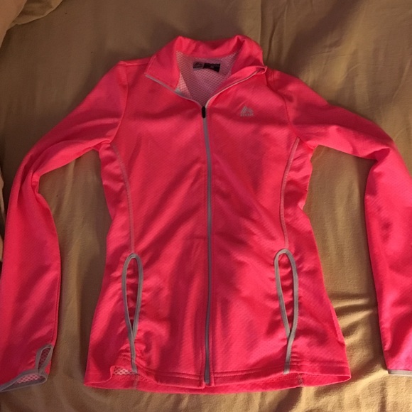 Super cute, hot pink running jacket. Perfect for running, even has thumb holds. Perfect condition. Only worn once! Make me an offer, I'm open to trades