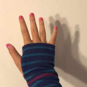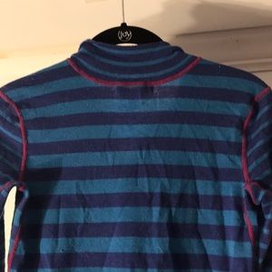 Blue running jacket with pink lining. Thumb hole on sleeve and zipper at the neck. Good condition.