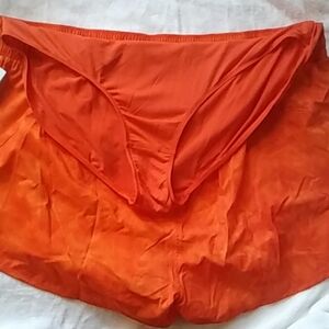 Mid rise running shorts in assorted orange, with continuous loop drawstring for ajustable fit. Secure zipper pocket, with waist pocket. With underwear lining.