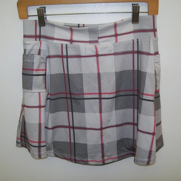 Running Skirts Womens Plaid SKORT Stretch Skirt & Briefs Athleisure 4-6 Gray Wht