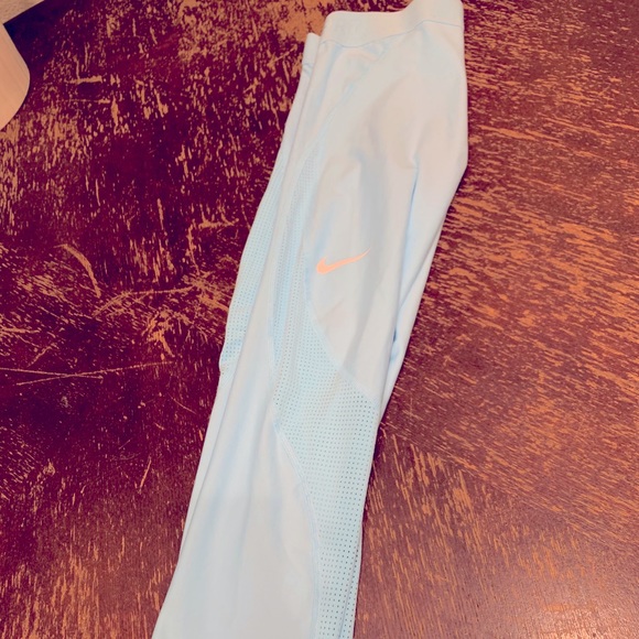 Light blue hole panel running tights with Nike soft band at top