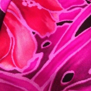 Made out of spandex with a fleece band for your ears. Very bright and fun floral design with shades of pink and purple. Comfortable fit.