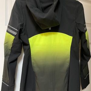 High visibility for low light conditions. Windproof. Hood and 2 hand pockets. Lightweight. Never worn
