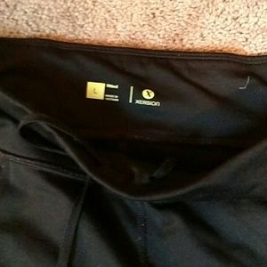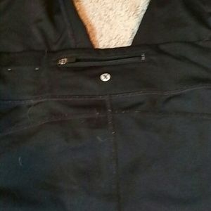 Jcp fitted leggings with reflective detail on the sides and shown in picture 3. There is a way to sinch the waist as there is a strap you may tighten if need be.