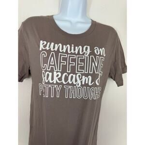 Running on Caffeine, Sarcasm & Petty Thoughts Tee Brown Bella Canvas Small