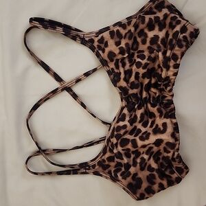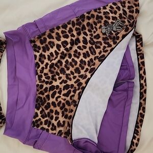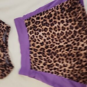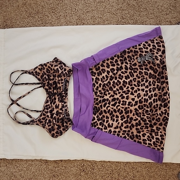 "leopard" print running skirt and matching bra top, 2 side pockets on skirt, built-in shorts. Great condition, small