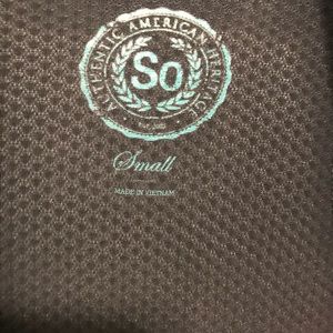 Worn only once, has very deep side pockets and a pocket on the back, thumb holes on the sleeves, very light