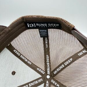 Runs Deep Tactical Coyote Tan Camo Trucker Cap with American