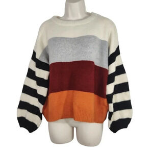 Runway 7 Ivory Red Orange Gray Striped Sweater Size XL Long Sleeve Crewneck