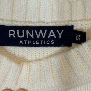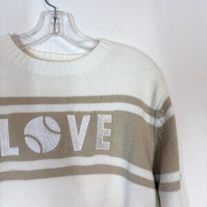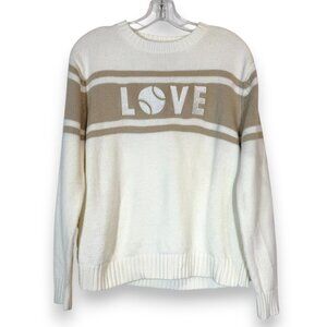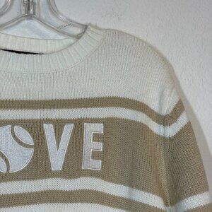 Runway Athletics Love Tennis Sweater White Tan Crew Neck Preppy XS