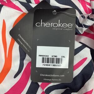 Runway By Cherokee NWT Scrub Top Multicolor Front Pockets Short Sleeve Size 2XL